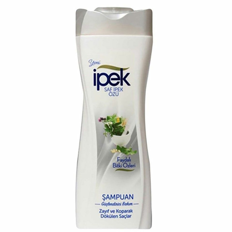 محصول نمایش داده شده در تصویر، شامپو "Ipek" است که برای موهای ضعیف و مستعد ریزش طراحی شده است. این محصول حاوی عصاره ابریشم خالص و عصارههای گیاهی مفید است.